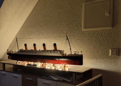 Jetzt steht seine wunderschöne Titanic bei uns beleuchtet da, und beide Jungs erfreuen sich täglich daran.